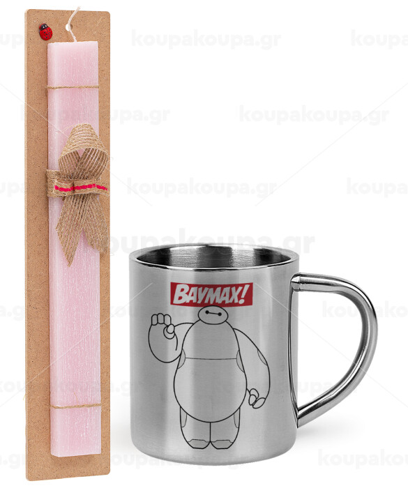 Baymax hi, Easter Set, metallic thermal cup (300ml) & aromatic flat Easter candle (30cm) (PINK)