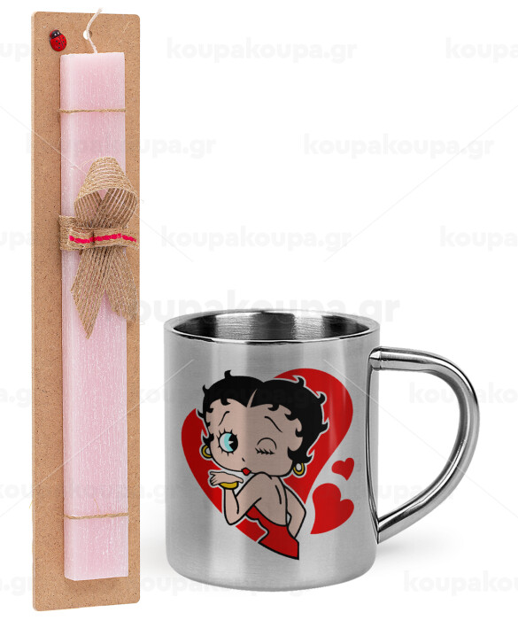 Betty Boop, Easter Set, metallic thermal cup (300ml) & aromatic flat Easter candle (30cm) (PINK)
