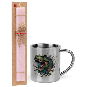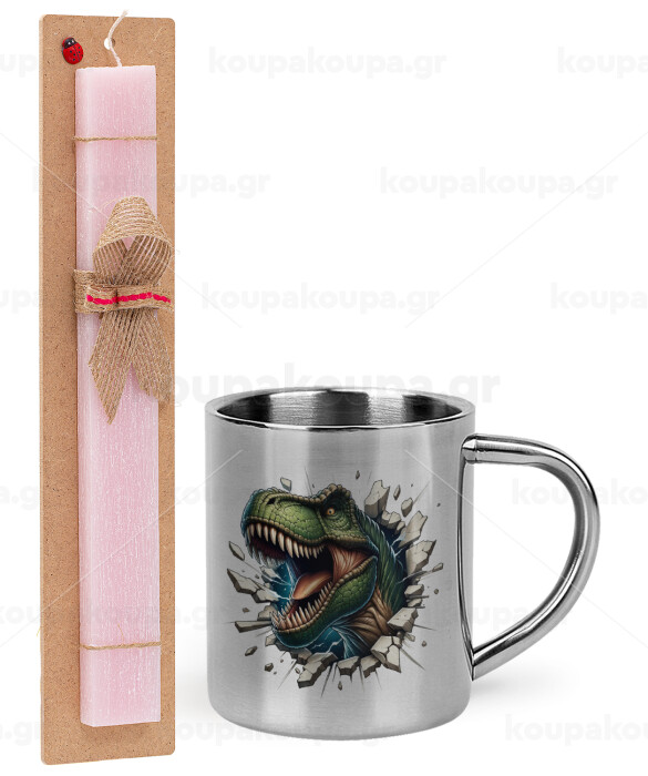 Dinosaur break wall, Easter Set, metallic thermal cup (300ml) & aromatic flat Easter candle (30cm) (PINK)