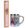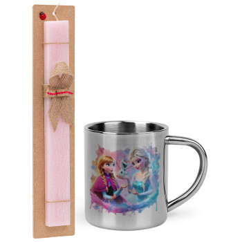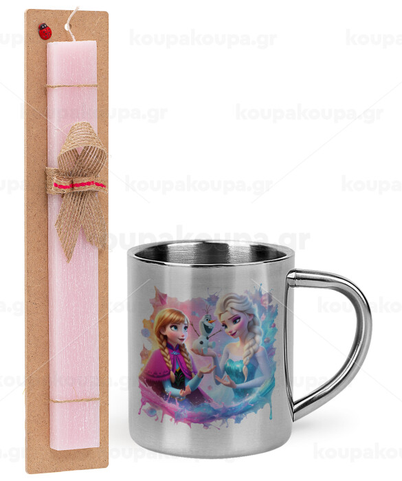 Elsa & Anna Princess, Easter Set, metallic thermal cup (300ml) & aromatic flat Easter candle (30cm) (PINK)
