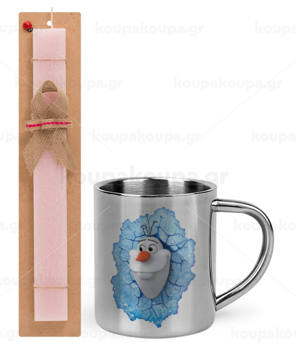 Frozen Olaf, Easter Set, metallic thermal cup (300ml) & aromatic flat Easter candle (30cm) (PINK)
