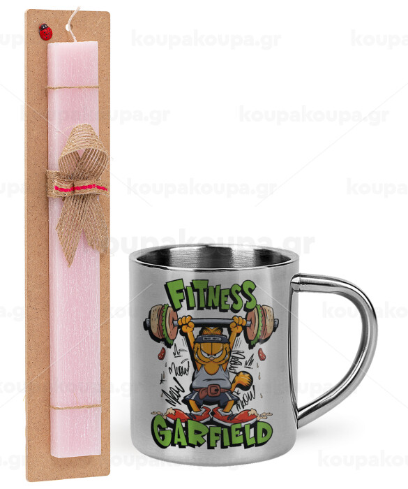 Garfield Fitness, Easter Set, metallic thermal cup (300ml) & aromatic flat Easter candle (30cm) (PINK)