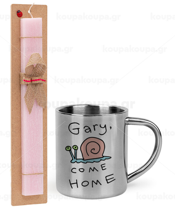 Gary come home, Easter Set, metallic thermal cup (300ml) & aromatic flat Easter candle (30cm) (PINK)