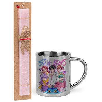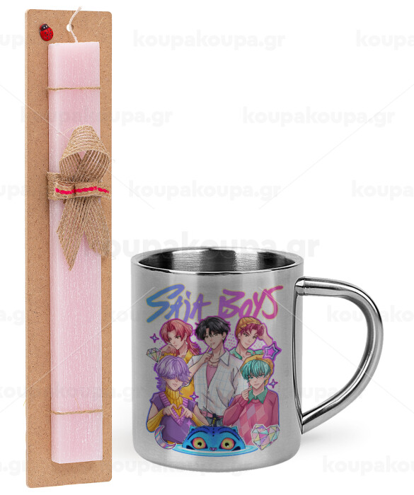 Huntrix Saja Boys, Easter Set, metallic thermal cup (300ml) & aromatic flat Easter candle (30cm) (PINK)
