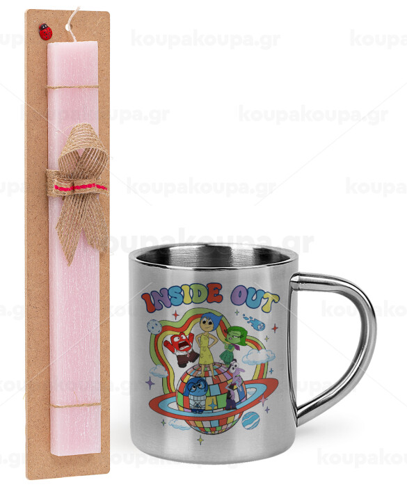 Inside Out, Easter Set, metallic thermal cup (300ml) & aromatic flat Easter candle (30cm) (PINK)