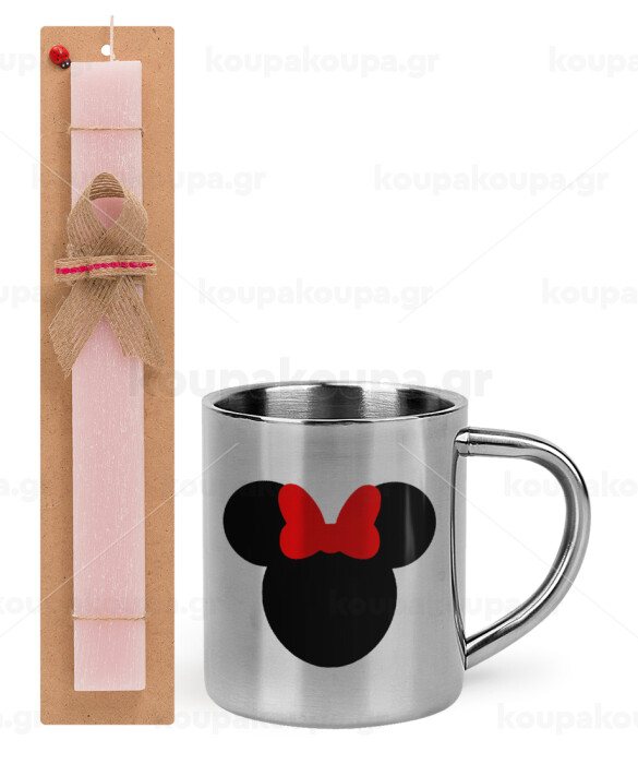 Minnie head, Easter Set, metallic thermal cup (300ml) & aromatic flat Easter candle (30cm) (PINK)