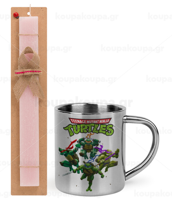 Ninja turtles, Easter Set, metallic thermal cup (300ml) & aromatic flat Easter candle (30cm) (PINK)