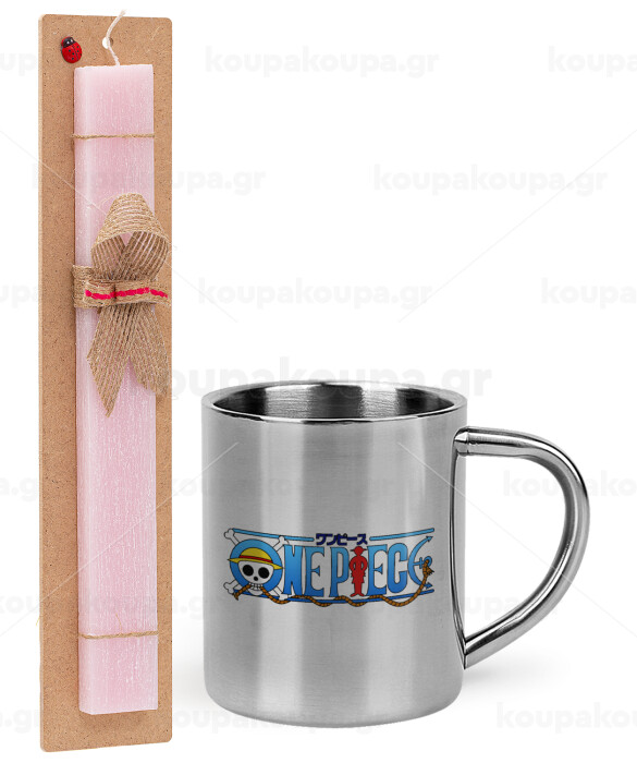 Onepiece logo, Easter Set, metallic thermal cup (300ml) & aromatic flat Easter candle (30cm) (PINK)