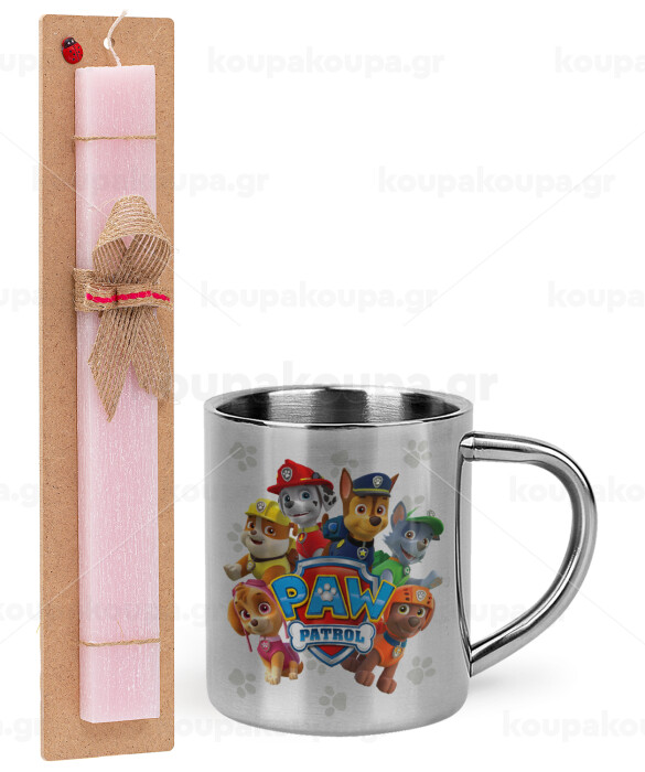 PAW patrol, Easter Set, metallic thermal cup (300ml) & aromatic flat Easter candle (30cm) (PINK)