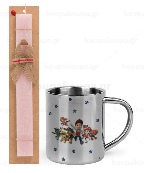 paw patrol, Easter Set, metallic thermal cup (300ml) & aromatic flat Easter candle (30cm) (PINK)