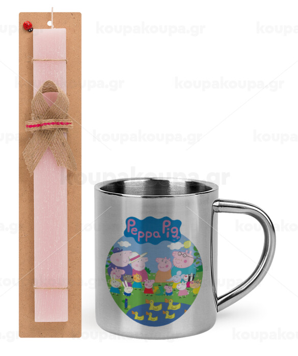 Peppa pig Family, Easter Set, metallic thermal cup (300ml) & aromatic flat Easter candle (30cm) (PINK)