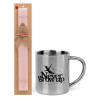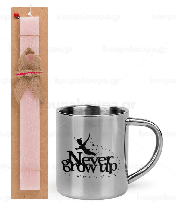 Peter pan, Never Grow UP, Easter Set, metallic thermal cup (300ml) & aromatic flat Easter candle (30cm) (PINK)
