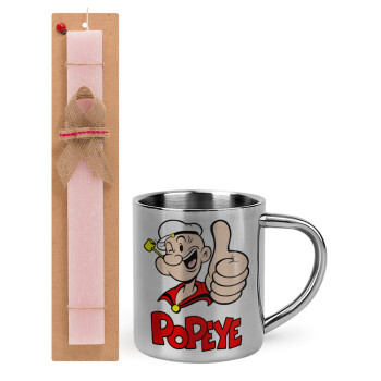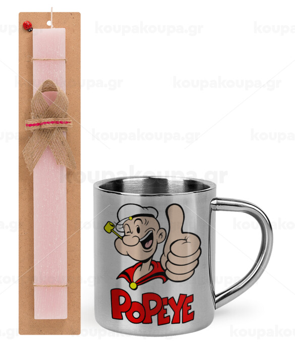 Popeye the sailor man, Easter Set, metallic thermal cup (300ml) & aromatic flat Easter candle (30cm) (PINK)