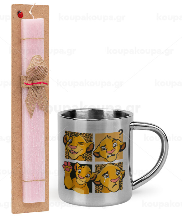 Simba, lion king, Easter Set, metallic thermal cup (300ml) & aromatic flat Easter candle (30cm) (PINK)