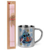 Stitch Pizza, Easter Set, metallic thermal cup (300ml) & aromatic flat Easter candle (30cm) (PINK)