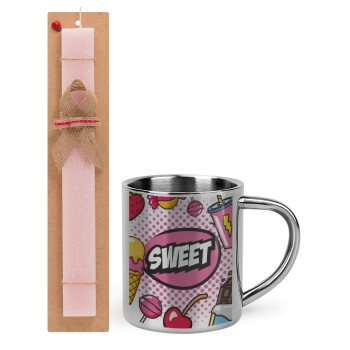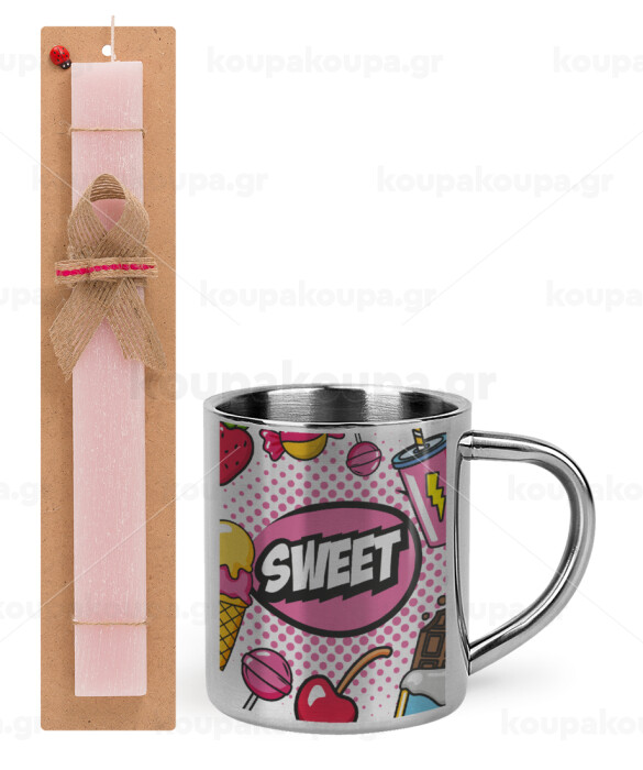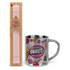 SWEET, Easter Set, metallic thermal cup (300ml) & aromatic flat Easter candle (30cm) (PINK)