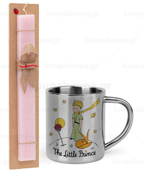 The Little prince classic, Easter Set, metallic thermal cup (300ml) & aromatic flat Easter candle (30cm) (PINK)