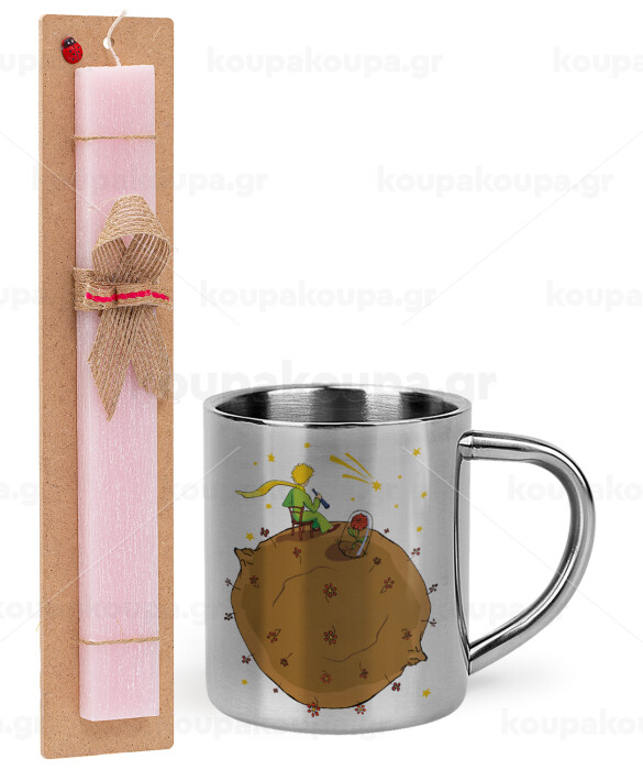 The Little prince planet, Easter Set, metallic thermal cup (300ml) & aromatic flat Easter candle (30cm) (PINK)