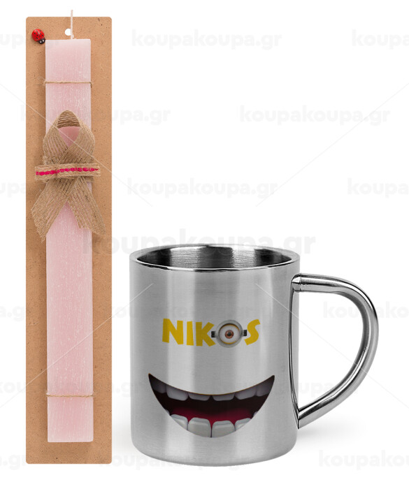 The minions, Easter Set, metallic thermal cup (300ml) & aromatic flat Easter candle (30cm) (PINK)
