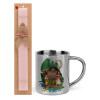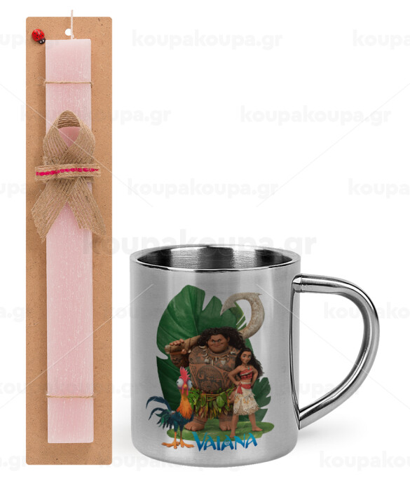 Vaiana, Easter Set, metallic thermal cup (300ml) & aromatic flat Easter candle (30cm) (PINK)
