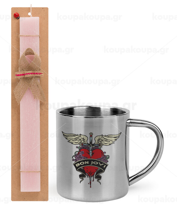 Bon Jovi, Easter Set, metallic thermal cup (300ml) & aromatic flat Easter candle (30cm) (PINK)