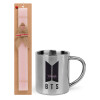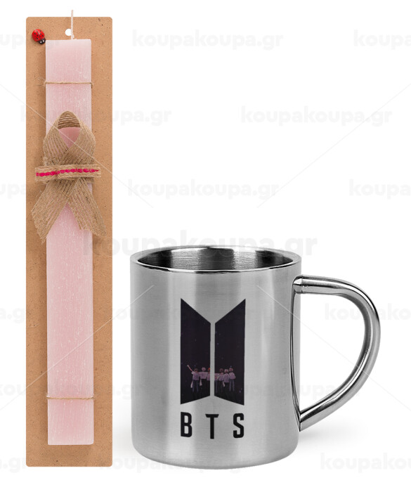 BTS, Easter Set, metallic thermal cup (300ml) & aromatic flat Easter candle (30cm) (PINK)
