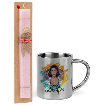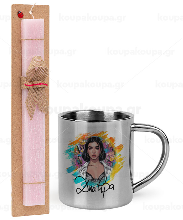 Dua lipa, Easter Set, metallic thermal cup (300ml) & aromatic flat Easter candle (30cm) (PINK)