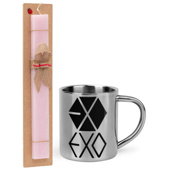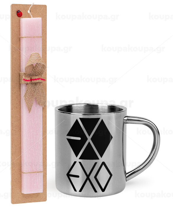 EXO Band korea, Easter Set, metallic thermal cup (300ml) & aromatic flat Easter candle (30cm) (PINK)