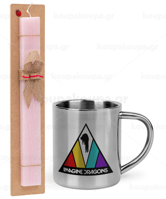 Imagine Dragons, Easter Set, metallic thermal cup (300ml) & aromatic flat Easter candle (30cm) (PINK)