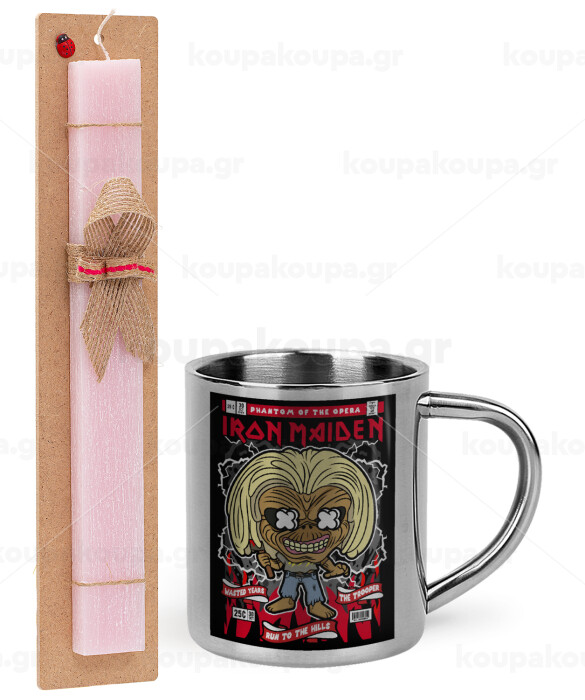 Iron maiden (eddie), Easter Set, metallic thermal cup (300ml) & aromatic flat Easter candle (30cm) (PINK)