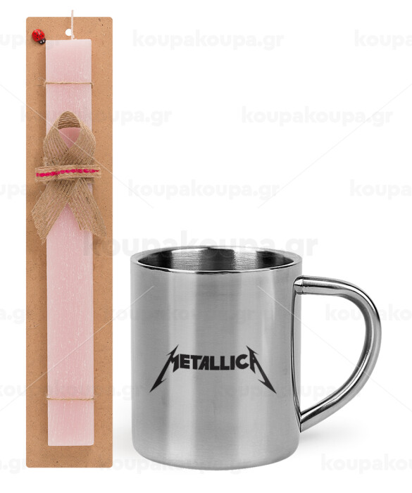 Metallica, Easter Set, metallic thermal cup (300ml) & aromatic flat Easter candle (30cm) (PINK)