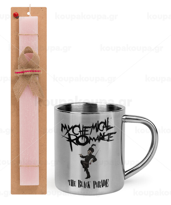 My Chemical Romance Black Parade, Easter Set, metallic thermal cup (300ml) & aromatic flat Easter candle (30cm) (PINK)