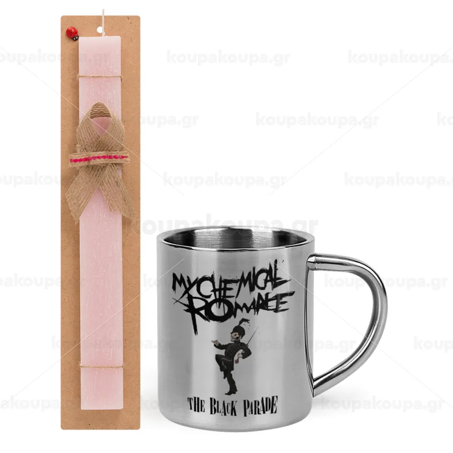 My Chemical Romance Black Parade, Easter Set, metallic thermal cup (300ml) & aromatic flat Easter candle (30cm) (PINK)
