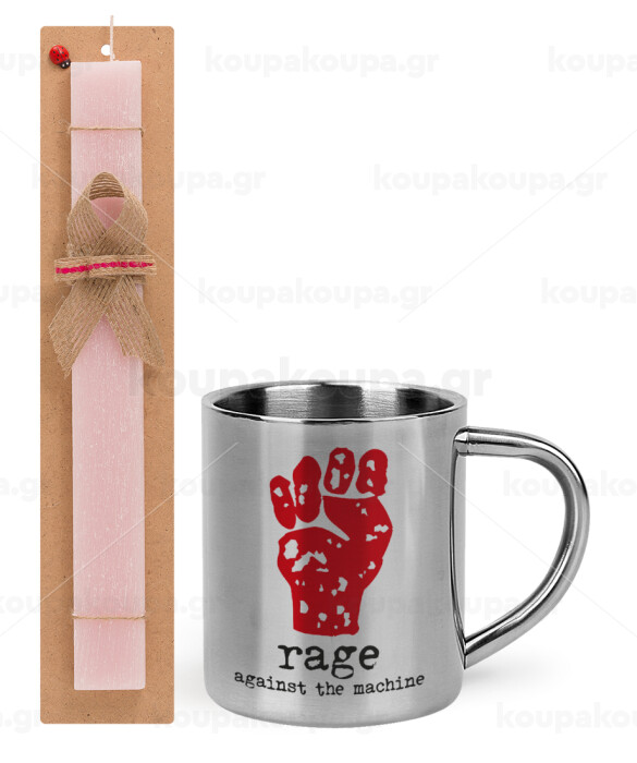 Rage against the machine, Easter Set, metallic thermal cup (300ml) & aromatic flat Easter candle (30cm) (PINK)