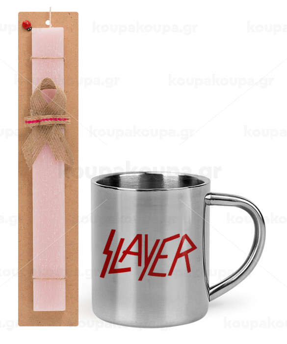 Slayer, Easter Set, metallic thermal cup (300ml) & aromatic flat Easter candle (30cm) (PINK)