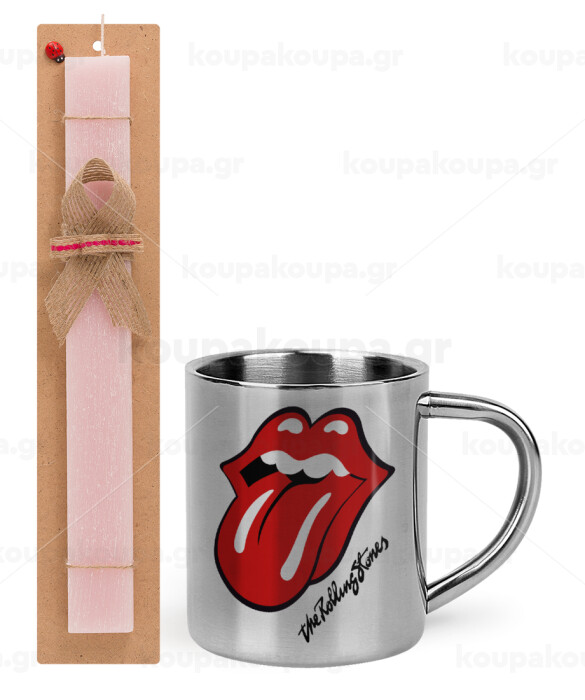 The rolling stones, Easter Set, metallic thermal cup (300ml) & aromatic flat Easter candle (30cm) (PINK)