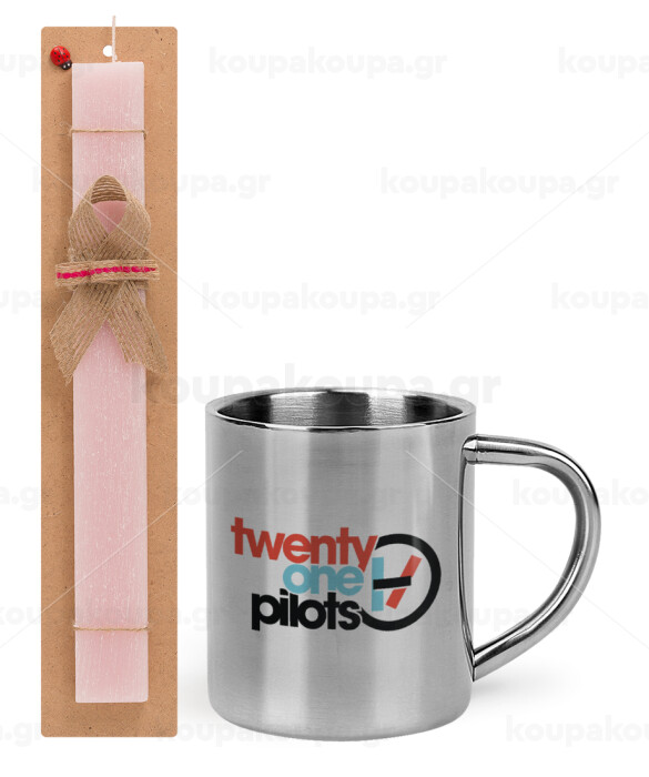 Twenty one pilots, Easter Set, metallic thermal cup (300ml) & aromatic flat Easter candle (30cm) (PINK)