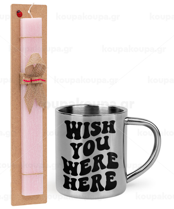 Wish you were here, Easter Set, metallic thermal cup (300ml) & aromatic flat Easter candle (30cm) (PINK)