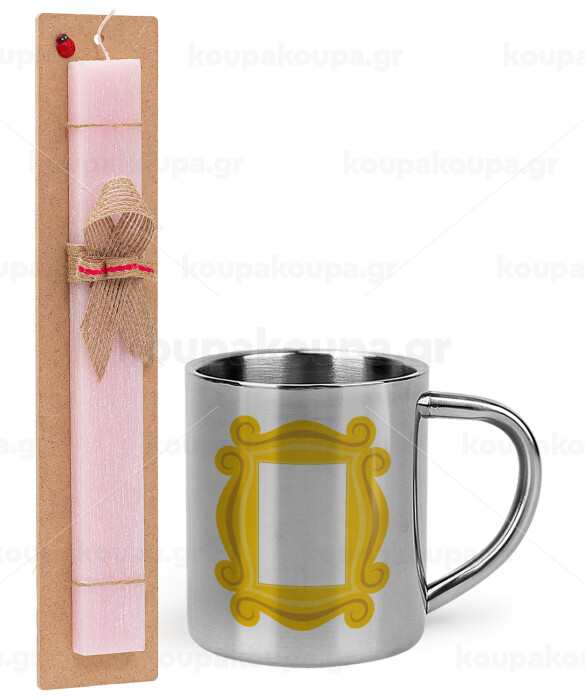 Friends frame, Easter Set, metallic thermal cup (300ml) & aromatic flat Easter candle (30cm) (PINK)