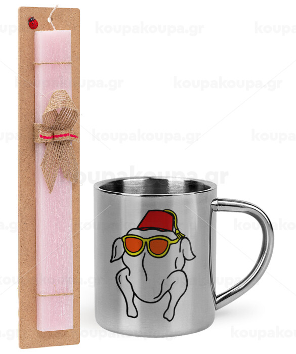 Friends turkey, Easter Set, metallic thermal cup (300ml) & aromatic flat Easter candle (30cm) (PINK)