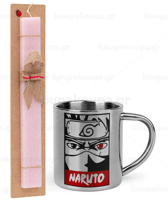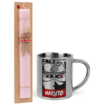 Naruto anime, Easter Set, metallic thermal cup (300ml) & aromatic flat Easter candle (30cm) (PINK)