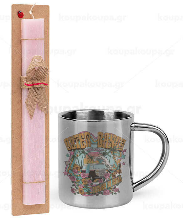 Outerbanks paradise on earth, Easter Set, metallic thermal cup (300ml) & aromatic flat Easter candle (30cm) (PINK)