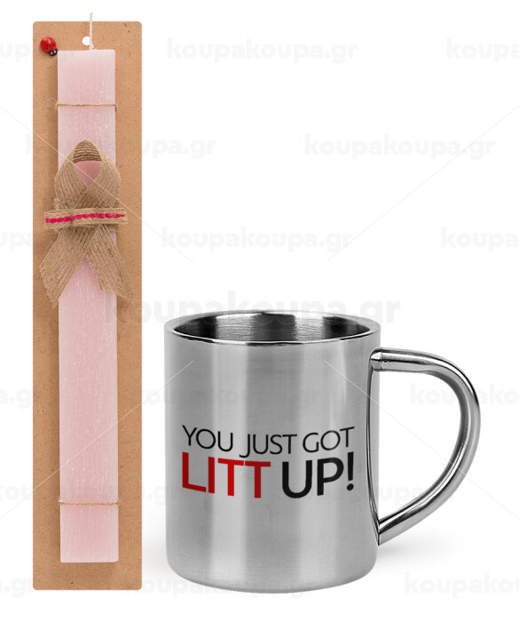 Suits You Just Got Litt Up! , Easter Set, metallic thermal cup (300ml) & aromatic flat Easter candle (30cm) (PINK)