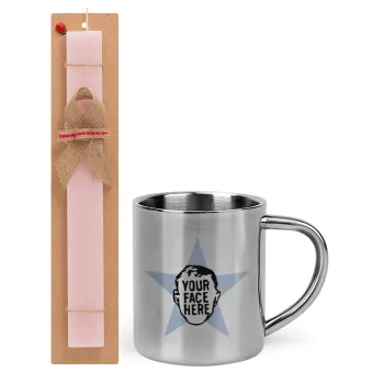 The office star CUSTOM, Easter Set, metallic thermal cup (300ml) & aromatic flat Easter candle (30cm) (PINK)