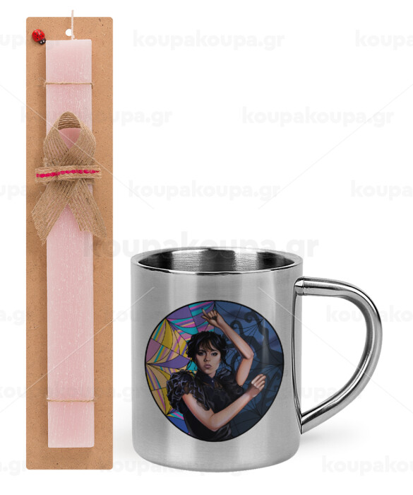 Wednesday dance, Easter Set, metallic thermal cup (300ml) & aromatic flat Easter candle (30cm) (PINK)