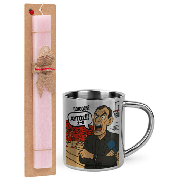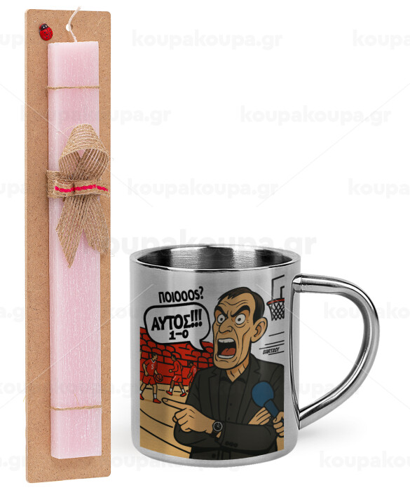 Μπαρτζό, Ποιος? Αυτός!!! 1-0, Easter Set, metallic thermal cup (300ml) & aromatic flat Easter candle (30cm) (PINK)