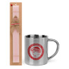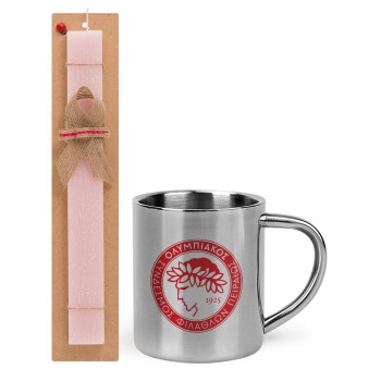 Ολυμπιακός, Easter Set, metallic thermal cup (300ml) & aromatic flat Easter candle (30cm) (PINK)
