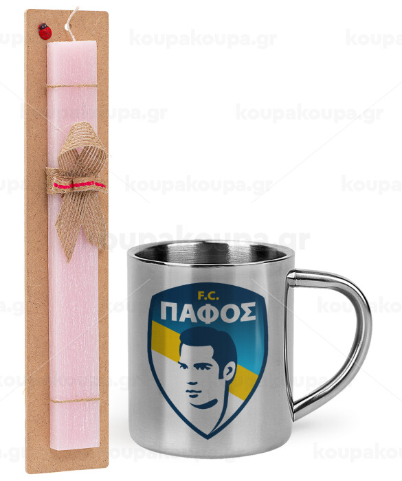 Πάφος FC, Easter Set, metallic thermal cup (300ml) & aromatic flat Easter candle (30cm) (PINK)