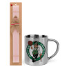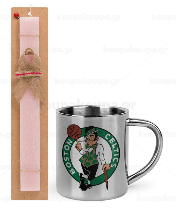 Boston Celtics, Easter Set, metallic thermal cup (300ml) & aromatic flat Easter candle (30cm) (PINK)