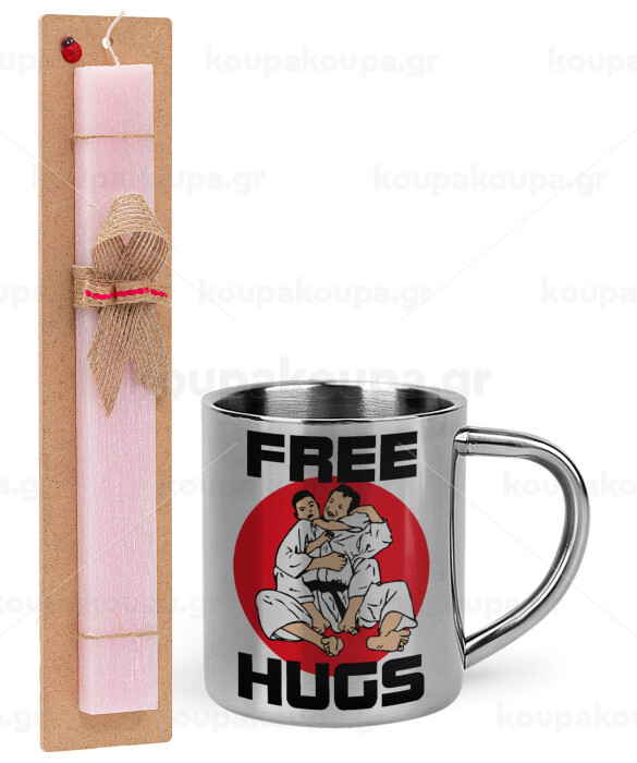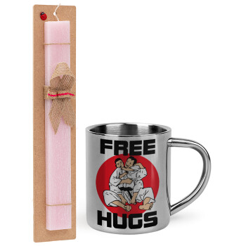JUDO free hugs, Easter Set, metallic thermal cup (300ml) & aromatic flat Easter candle (30cm) (PINK)